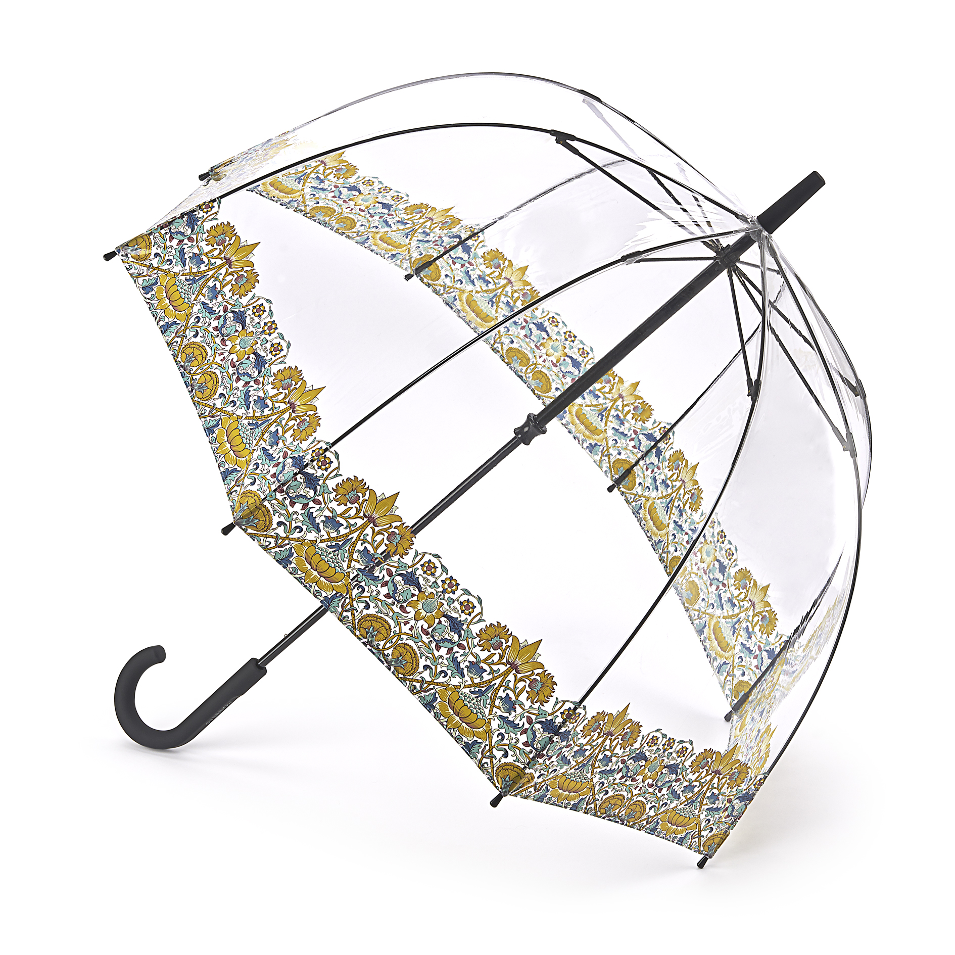 Timeless floral prints from the single most influential designer of the nineteenth century. Fashionable dome shape featuring classic Morris & Co print. Transparent canopy offers fantastic coverage and visibility. Features patented mechanism for safe, smooth open and close action. Fiberglass ribs for flexibility and strength in high winds. Umbrella measures 94cm long when closed, span when open 84cm. Weight 530g (approx.)