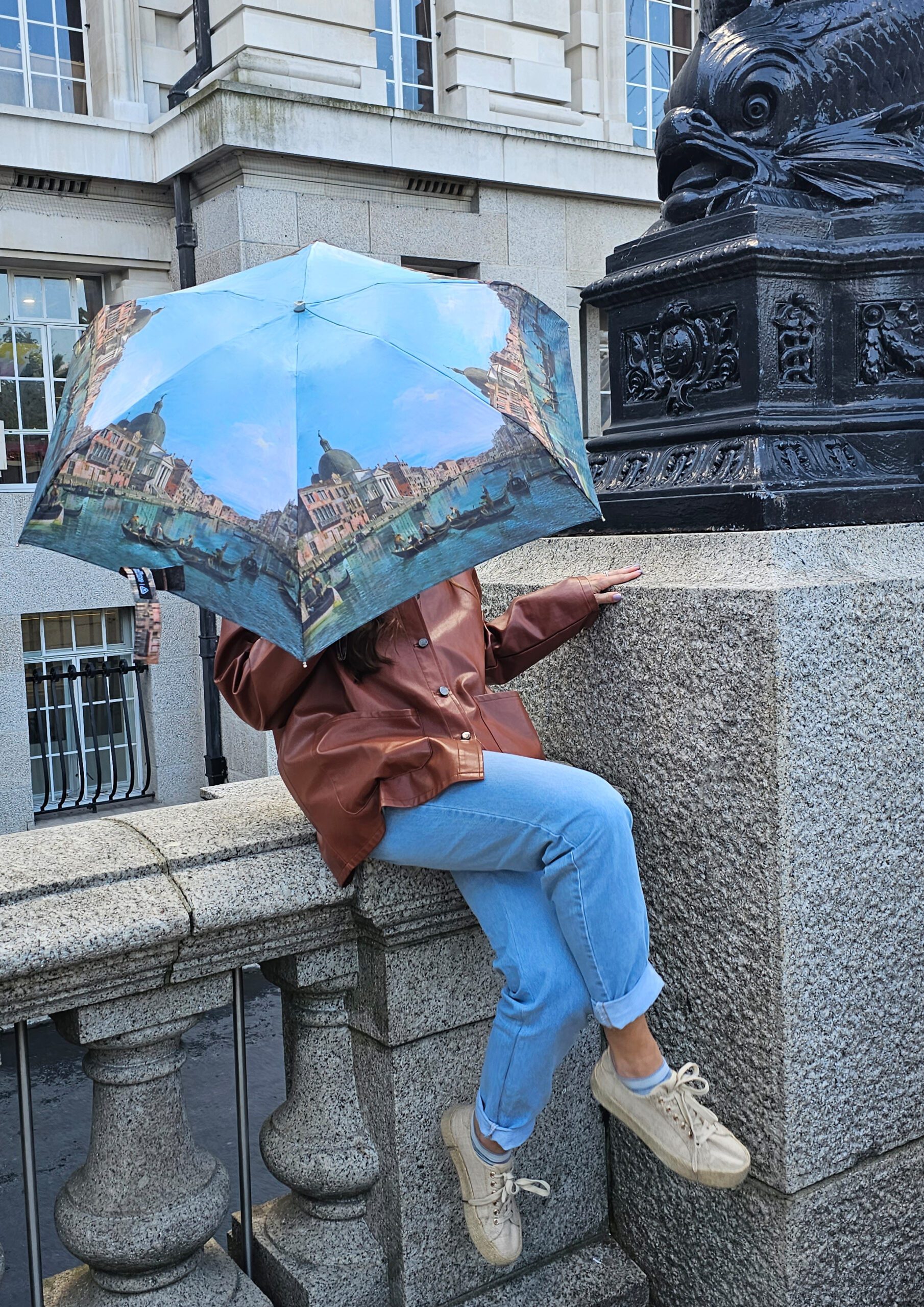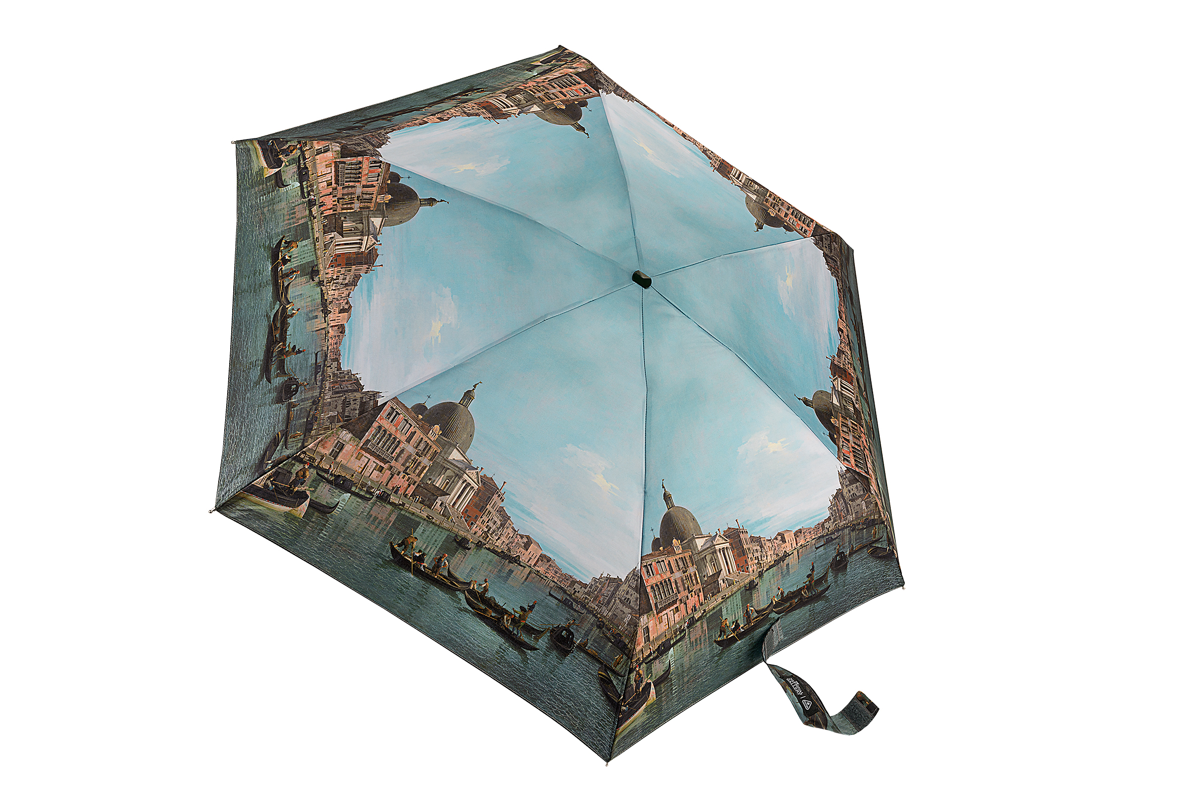 La National Gallery par Fulton. Canaletto, 1697-1768 — Parapluie plat, compact, manuel avec fourreau assorti qui le rend facilement transportable. Forme ultra-compacte, plate. Armature légère en aluminium et en fibre de verre. Poids : environ 160 g. Armature souple renforçant la résistance au vent. Dimensions lorsque le parapluie est fermé : 15 cm x 5 cm x 3 cm. Envergure lorsque le parapluie est ouvert : 87 cm